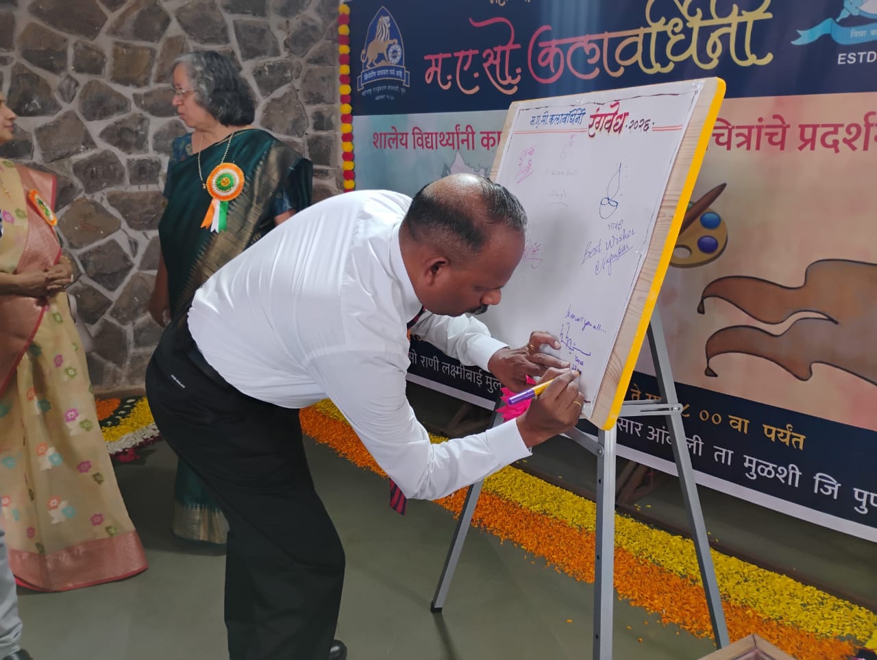 महाराष्ट्र एज्युकेशन सोसायटीच्या म.ए.सो. ‘कलावर्धिनी’ तर्फे तीन दिवसीय ‘रंगवेध’ चित्रकला प्रदर्शनाचे आयोजन करण्यात आले आहे. उद्घाटन समारंभाचा कार्यक्रम शुक्रवार दिनांक २७ मार्च २०२६ रोजी सकाळी १०.३० वाजता म.ए.सो. राणी लक्ष्मीबाई मुलींची सैनिकी शाळेत ‘रंगवेध’ चित्रकला प्रदर्शन उद्घाटनाचा कार्यक्रम उत्साहात संपन्न झाला.