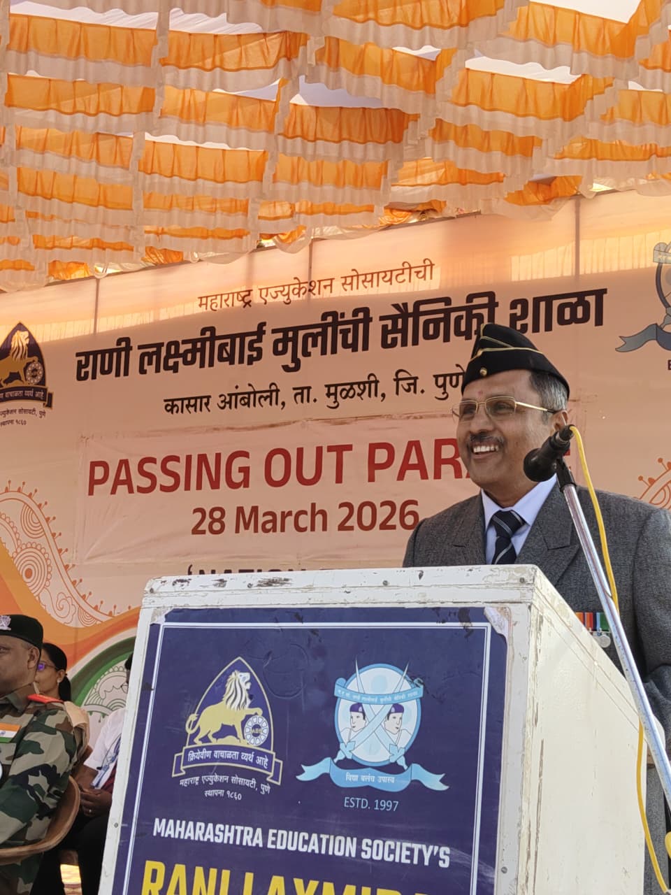 मएसो राणी लक्ष्मीबाई मुलींची सैनिकी शाळा येथे इयत्ता बारावीची पासिंग आऊट परेड उत्साहात संपन्न झाली. इयत्ता बारावीच्या कॅडेटसनी शानदार संचलन करीत प्रमुख अतिथींना मानवंदना देत अंतिम पग पार केले. अॅकॅडमिक कॅडेट कॅप्टन शैजल राकेश पाटील हिने पासिंग आऊट परेड चे नेतृत्व केले. सैनिकी शाळेच्या इतिहासात पहिल्यांदाच इ.12 वी च्या कॅडेटस नी शानदार असे सशस्त्र संचलन केले. कार्यक्रमाचे प्रमुख अतिथी म्हणून कर्नल पंकज करवंदे (निवृत्त), सौ. मंजुषा करवंदे, मएसो कलावर्धिनी महामात्र व रंगवेध 2026 चे समन्वयक डाॅ. गोविंद कुलकर्णी, सैनिकी शाळेचे कमांडंट एविएन विंग कमांडर म. यज्ञरामन, सिनिअर मास्टर व पर्यवेक्षक संदीप पवार हे उपस्थित होते. आपल्या मनोगतात कर्नल पंकज करवंदे यांनी सांगितले की देशाच्या संरक्षण व्यवस्थेत महिलांसाठी अनेक संधी निर्माण होत आहेत त्या दृष्टीने सर्वच कॅडेटसनी आपली शारीरिक, मानसिक व बौद्धिक क्षमता वाढविली पाहिजे असे सांगितले. याप्रसंगी सैनिकी शाळेची मानाची असलेली तलवार “बेस्ट स्वार्ड ऑफ ऑनर” चा बहुमान अॅकॅडमिक कॅडेट कॅप्टन शैजल राकेश पाटील हिला मिळाला, तर बेस्ट इन अॅकॅडमिक्स ट्रॉफी अॅकॅडमी अॅडज्युटंट कॅडेट भक्ती तानाजी मोरे, बेस्ट इन आऊट डोअर ट्रेनिंग ट्रॉफी स्पोर्ट्स व्हाइस कॅप्टन कॅडेट रिद्धी रोहित पासलकर यांना प्रमुख अतिथींच्या हस्ते पारितोषिके देण्यात आली.