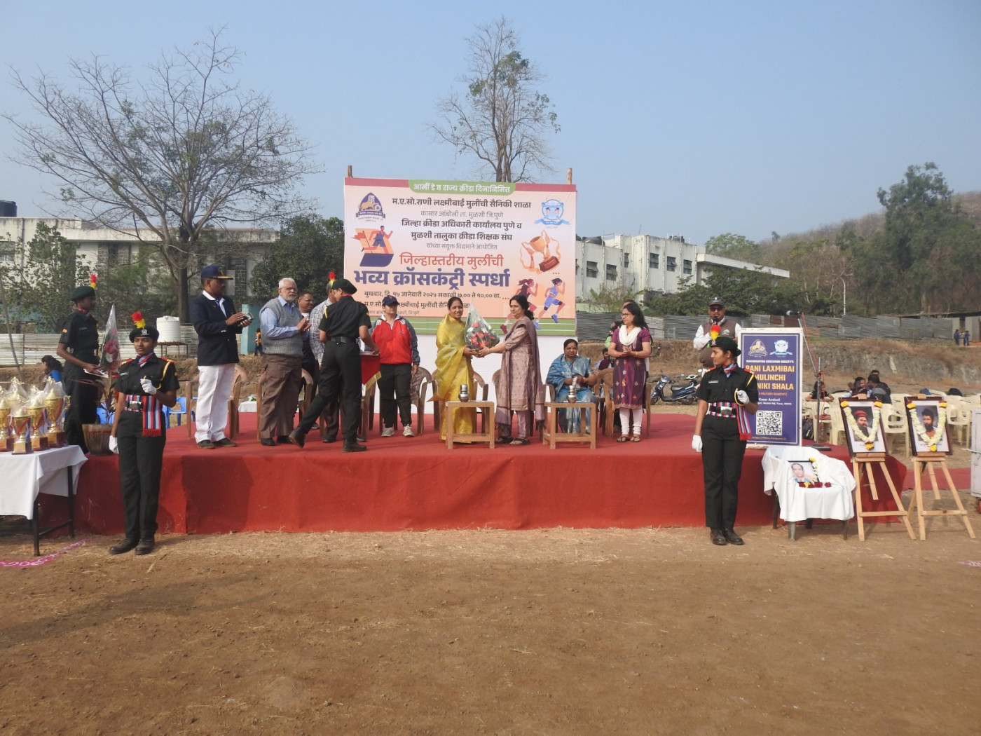 15 जानेवारी आर्मी डे महाराष्ट्र राज्य क्रीडा दिनानिमित्त म.ए.सो. राणी लक्ष्मीबाई मुलींची सैनिकी शाळा कासार आंबोली, ता. मुळशी जि. पुणे, जिल्हा क्रीडा अधिकारी कार्यालय पुणे व मुळशी तालुका क्रीडा शिक्षक संघ यांच्या संयुक्त विद्यमाने आयोजित जिल्हास्तरीय भव्य मुलींची क्राॅसकंट्री स्पर्धा आयोजित करण्यात आली होती. या स्पर्धेचे उद्घाटन सैनिकी शाळेच्या माजी विद्यार्थिनी मेजर (निवृत्त) अर्चिस सबनीस, म.ए.सो. चे सहसचिव व क्रीडा वर्धिनीचे महामात्र श्री. सुधीर भोसले, क्रीडा म.ए.सो. क्रीडावर्धिनी समन्वयक पुणे क्रीडा भारती चे अध्यक्ष श्री. शैलेश आपटे, सैनिकी शाळेचे महामात्र डाॅ. उमेश बिबवे, शाळेचे कमांडंट ए.वि.एन विंग कमांडर श्री. एम यज्ञरामन, प्राचार्या श्रीमती पूजा जोग, पर्यवेक्षक श्री. श्याम नांगरे, श्री. संदीप पवार यांच्या हस्ते झाले, तर पारितोषिक वितरण पंचायत समिती मुळशीच्या माजी उपसभापती सौ. सारिका मांडेकर, शाला समिती अध्यक्षा तथा म.ए.सो. नियामक मंडळाच्या उपाध्यक्षा सौ. आनंदी पाटील, शाळेच्या महामात्रा प्रा. चित्रा नगरकर, क्रीडा समन्वयक श्री. राजकुमार शिर्के, पालक प्रतिनिधी श्री. सूर्यकांत निठुरे यांच्या हस्ते झाले. या स्पर्धा वयोगट १२, १४ व १७ फक्त मुलींसाठी आयोजित करण्यात आल्या होत्या. स्पर्धेचा निकाल पुढीलप्रमाणे.