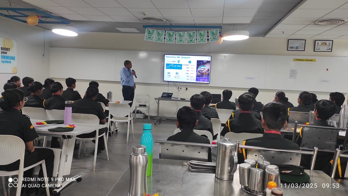 In association with DANA technical Pvt. Ltd. RLMSS planned an Industrial visit at Bamboli Chakan on 11th March, 2025 The shadow Cadet Captains of class 11th and members of ATAL Tinkering Club from Class 8th and 9th were also selected for the visit.